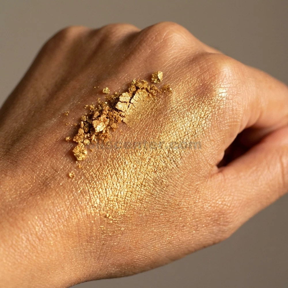 - This radiant gold powder delivers bold sparkle with a bright, warm yellow tone and a subtle reddish undertone. It evokes a cheerful, sunny, and uplifting feel.