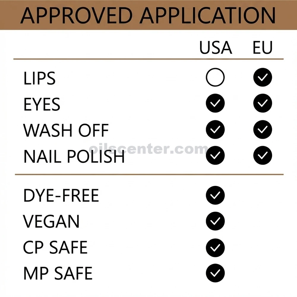 Our mica pigments and oxides comply with European cosmetic standards and are approved for use in cosmetics in accordance with FDA guidelines.