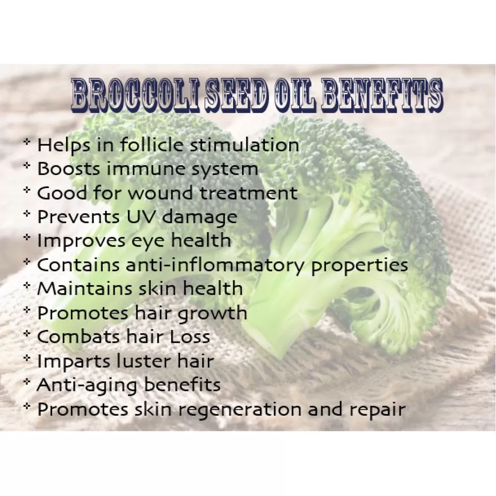 Ingredients: Broccoli Seed Oil, 100% Pure with NO additives or carriers added.