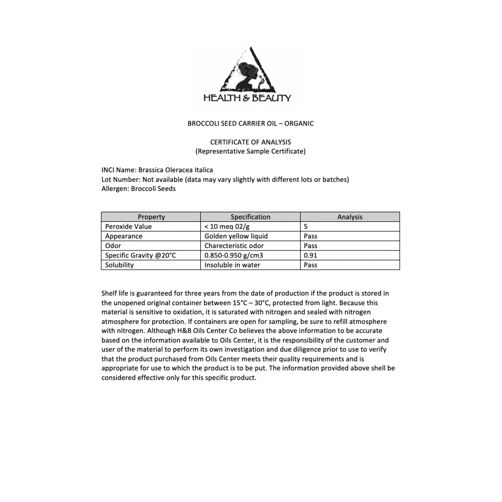 Aromatic Description: Broccoli Seed Oil has very little scent characteristic of most carrier oils.
