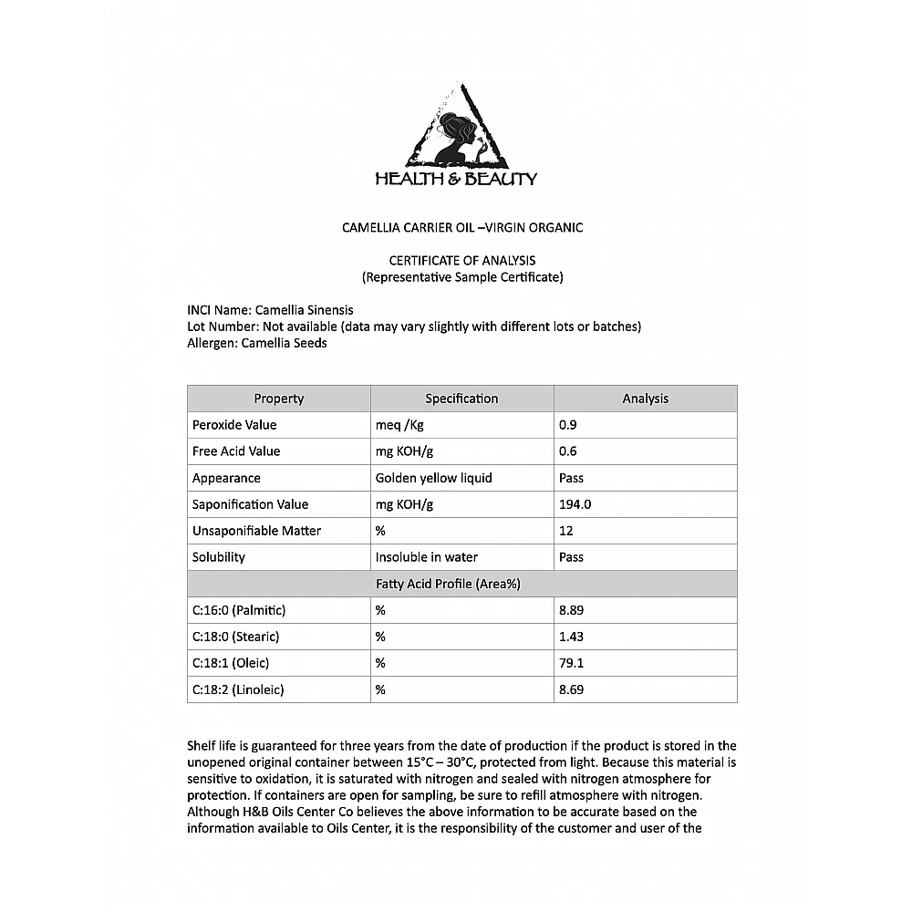 CAMELLIA SEED OIL, UNREFINED, ORGANIC, COLD PRESSED, PUREBotanical Name: Camellia sinensis. Extraction Method: Cold Pressed. Processing Type: Unrefined. Obtained From: Seeds. Organic: Made without pesticides, GMO's, or hexane. Ingredients: Camellia seed oil, 100% Pure with NO additives or carriers added. Description: A wild flower which grows in China and Japan. This natural plant oil contains anti-oxidants that help to revitalize and rejuvenate the hair and skin. Color: Golden yellow liquid. Aromatic Description: Has a light, nutty flavor. Common Uses: Camellia oil has outstanding moisture retaining ability and is one of the most rapidly absorbed plant oils. Camellia oil protects the skin from free radical damage, refines mature skin, and nourishes the complexion. The unique make-up of the oil allows it to penetrate into the deepest layers of the skin; much like water, leaving it smooth and supple. The non-drying and non-clogging oil is very rich in mono-saturated essential fatty acids. It is particularly high in oleic acid that exceeds the level of olive oil. Camellia oil possesses a unique active constituent known as Squalane. Squalane is also an important component of the skin’s natural emollient system. A deficiency of Squalane can result in dry skin and premature aging , resulting in wrinkles and sagging skin. Camellia oil is an excellent emollient and wonderful skin moisturizer. For centuries Camellia Oil has been used as a traditional hair conditioner and also as a treatment to strengthen brittle nail. Consistency: Typical and Characteristic of Carrier Oils. Absorption: Camellia Seed Carrier Oil is readily absorbed into the skin leaving a smooth finish. We are buying our product from organic certified supplier, made with organic ingredients. Shelf Life: Users can expect a shelf life of 1 year with proper storage conditions (cool, out of direct sunlight). Refrigeration after opening is recommended. |