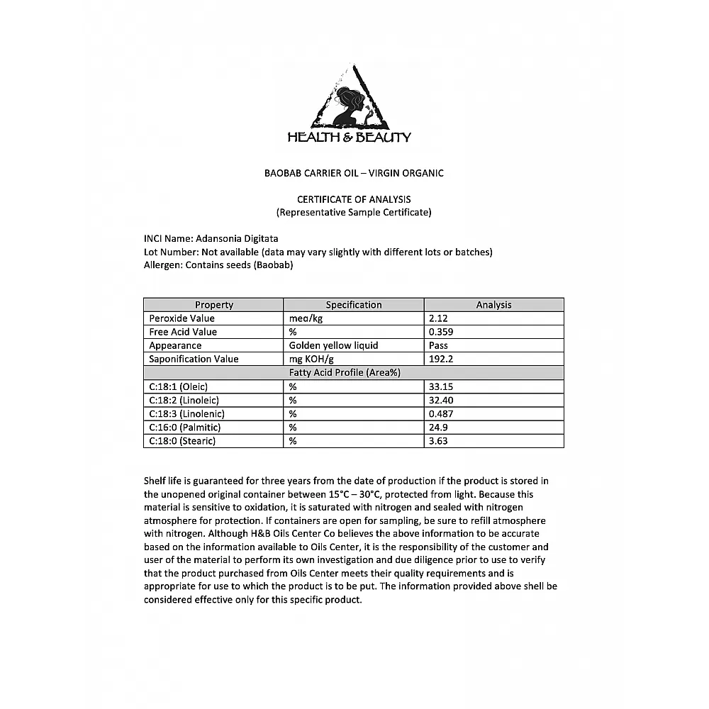 Descripción aromática: El aceite de baobab tiene muy poco aroma característico de la mayoría de los aceites transportadores.
