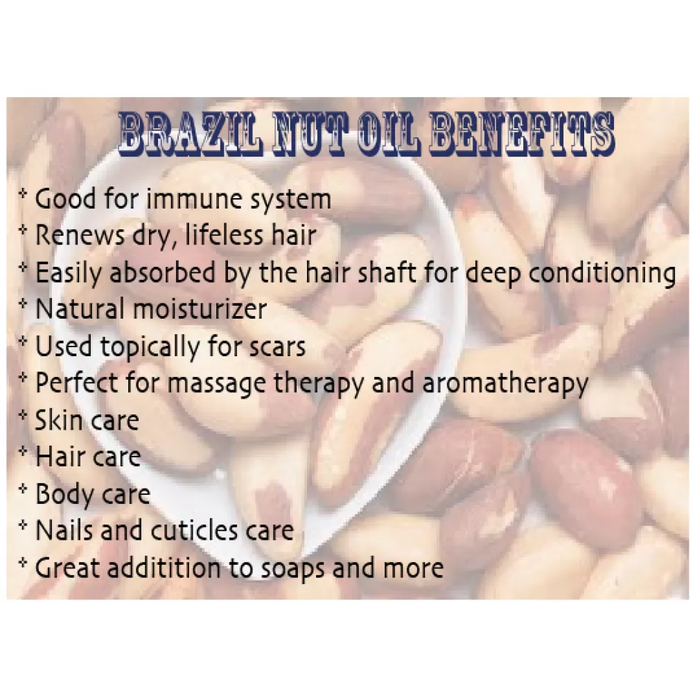 Descripción aromática: el aceite de nuez de Brasil tiene muy poco olor característico de la mayoría de los aceites transportadores .