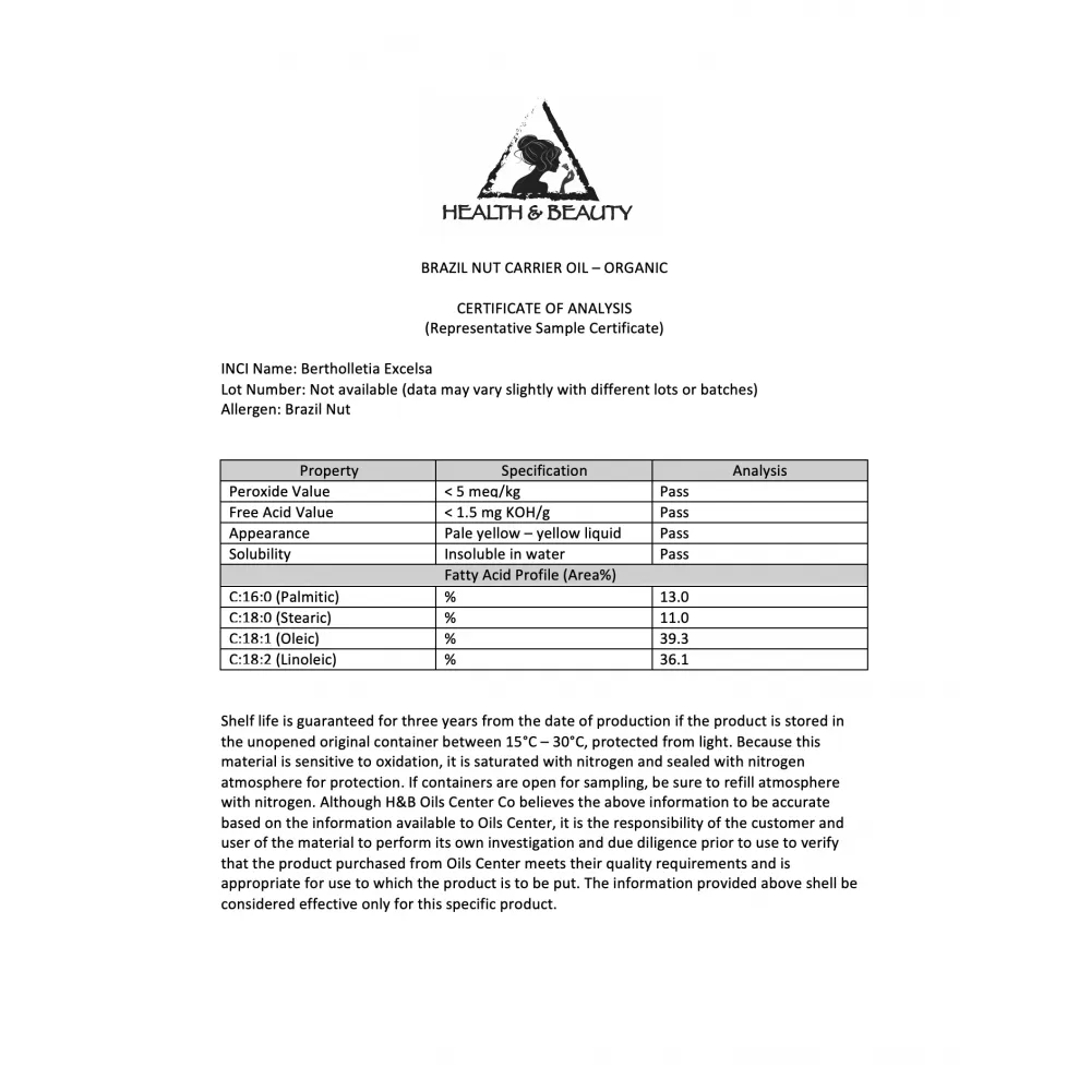 Ingredientes: aceite de nuez de Brasil, 100% puro con NO se agregaron aditivos ni portadores.
