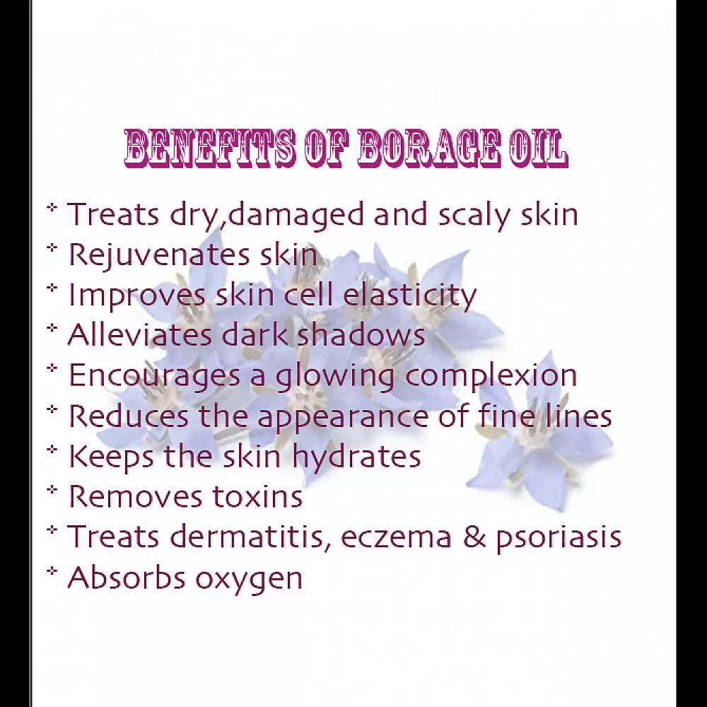 Usos comunes: a menudo se agregan pequeñas cantidades (10% o menos) de borraja a otros aceites transportadores para su fortificación. Es aplicable para todo tipo de piel y se usa comúnmente en aplicaciones de fabricación, aromaterapia y masajistas. Aceite apreciado por sus abundantes beneficios dietéticos, de salud, cosméticos y medicinales. El aceite de semilla de borraja es un aceite maravilloso para usar en el masaje, el cuidado de la piel y el cabello, es la fuente más rica de ácidos grasos Omega 6 de cualquier aceite a base de semillas. El aceite de semilla de borraja es ideal para usar en pieles envejecidas prematuramente y para regenerar la actividad celular de la piel.