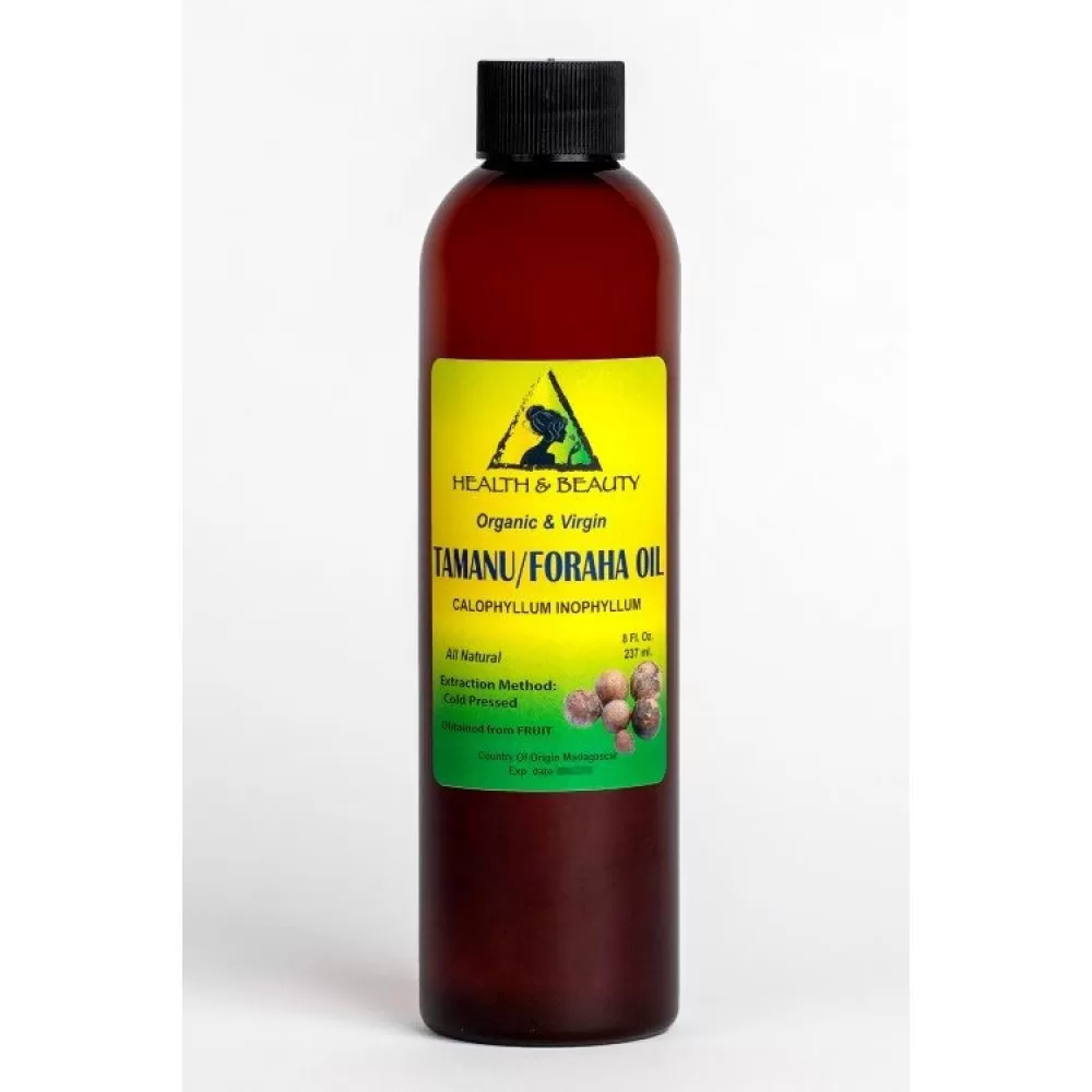 ACEITE DE TAMANU ORGÁNICO / FORAHA, SIN REFINAR, VIRGEN, PRENSADO EN FRÍO, RAW, PURE (MADAGASCAR)ESTE ACEITE APTO PARA PROPÓSITO COSMÉTICO Nombre botánico: Calophyllum Inophyllum Método de extracción: prensado en frío Cinta de procesamiento: sin refinar Orgánico : Hecho sin pesticidas, OGM o hexano. Ingredientes: aceite de Tamanu / Foraha, 100% puro sin aditivos ni portadores añadidos. Paquete / Forma : Botella de vidrio ámbar con tapa fenólica. Color: Líquido aceitoso viscoso verde oscuro. Descripción aromática: el aceite portador de Tamanu Madagascar tiene un rico aroma a aceite especiado y amaderado. Descripción: Esta variedad de aceite de Tamanu se origina en Madagascar, aunque también se puede encontrar en el sudeste asiático. La fruta (semillas) se recolecta a mano de los árboles costeros de Tamanu, ya que se dice que producen el aceite de la más alta calidad. Usos comunes: Tamanu Carrier Oil tiene fama de tener maravillosas propiedades para curar heridas. Se conoce como una cura para casi todas las enfermedades de la piel que uno pueda imaginar, desde el acné hasta el eccema y la psoriasis. El aceite de tamanu se puede usar en productos para el cuidado de la piel, ya que está compuesto de fosfolípidos y glicolípidos, que son componentes naturales de una piel sana y son buenos agentes aglutinantes de agua. Es un poderoso sanador para quemaduras, cortes, eczema, erupciones y picaduras de insectos. Se puede aplicar puro a la piel o mezclado con otros aceites portadores. Consistencia: Sólido a temperatura ambiente. El producto debe calentarse en un baño de agua tibia para licuarlo. Absorción: se absorbe en la piel a una velocidad promedio, dejando una ligera sensación de grasa en la piel. Estamos comprando nuestro producto a un proveedor certificado orgánico, hecho con ingredientes orgánicos. Vida útil: los usuarios pueden esperar una vida útil de 1 año con condiciones de almacenamiento adecuadas (fresco, fuera de la luz solar directa). Se recomienda la refrigeración después de la apertura. Precauciones: Las personas con alergia a las nueces no deben usar este aceite.