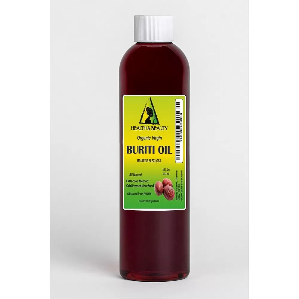 Descripción: Según el naturalista Humbolt, Buriti significa 'árbol de la vida', ya que la mayoría de las necesidades humanas podrían ser suplidas por su fruto. Crece en zonas pantanosas de la cuenca del río Amazonas. Este aceite de color amarillo dorado a rojo se extrae de la pulpa del fruto, que es muy rica en carotenoides (el rendimiento de vitamina A es de 50.000 U.I. p / 100g).