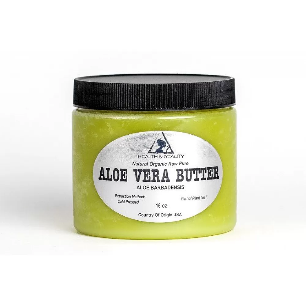 Mantequilla orgánica aloe vera crudaFRÍO PREMIUM FRÍO PREMIUM 100% PURONombre botánico: Aloe Barbadensis. Método de extracción: prensado en frío. Obtenido de: Plant Leaf. Orgánico: Hecho sin pesticidas, OGM o hexano. Ingredientes: Manteca de Aloe Vera, 100% Pura sin aditivos ni portadores añadidos. Descripción: Esta mantequilla natural se comprime en frío de la hoja de la planta de aloe. Usos comunes: esta mantequilla la convierte en una base ideal para acondicionadores de cabello y lociones bronceadoras. La mantequilla de aloe vera contiene proteínas, minerales, tocoferol natural, alto contenido de ácido eicosenoico y ácidos grasos monoinsaturados de cadena larga, así como una sustancia cerosa similar al colágeno. Hipoalergénica y pura, la mantequilla de aloe vera es perfecta para cualquier tipo de piel. Usos comunes de la mantequilla de aloe vera: cremas, lociones, jabones, pomadas, cremas y lociones para después del sol, productos de protección solar, acondicionadores para el cabello. Beneficios de la mantequilla de aloe vera: reduce las arrugas y las estrías, ayuda a aclarar y curar cicatrices, actúa como un humectante al crear una película protectora sobre la piel y el cabello que sella la humedad, disuelve los poros obstruidos y devuelve la piel al equilibrio natural del pH, penetra los poros y folículos pilosos rápidamente para reducir la pérdida de agua, se siente no graso Ayuda a difundir la capacidad y la lubricidad, acondicionador efectivo, humectante y suavizante para la piel y el cabello. Uso recomendado: • Lociones y cremas: 5 - 20% • Bálsamos: 5 - 100% • Jabones en barra: 5 - 20% • Acondicionadores para el cabello: 2 - 5% Al agregar una mantequilla a las cremas y lociones, puede ser necesario calentarla suavemente hasta que se derrita o tenga una textura muy suave, y se puede incorporar al producto final. Usando una batidora de mano, cree un vórtice con su crema o loción y rocíe su mantequilla derretida hasta que esté completamente incorporada y esté uniformemente suave. Para la adición en jabones, la regla general es una cucharada por libra (15 ml / 500 g). Como con la mayoría de las materias primas, los resultados pueden variar, por lo que recomendamos encarecidamente lotes pequeños a escala de laboratorio antes de cualquier fabricación comercial. Nota: Debido a la naturaleza del proceso de extracción, el color y la consistencia de esta mantequilla pueden variar de un lote a otro. Tenga la seguridad de que este es un producto totalmente natural. Almacenamiento recomendado: Tenga en cuenta que esta mantequilla idealmente debe almacenarse en un refrigerador para mantener su textura. Se volverá suave en temperaturas más cálidas. Estamos comprando nuestro producto a un proveedor certificado orgánico, hecho con ingredientes orgánicos. Vida útil: Almacene en temperaturas frescas (por debajo de 25 ° C) lejos de la luz y la humedad en un recipiente hermético. El producto se volverá líquido por encima de la temperatura ambiente (por ejemplo, 36 ° C), pero se solidificará nuevamente al enfriarse sin afectar la funcionalidad. Esta mantequilla tiene una vida útil de 1 año cuando se almacena adecuadamente.