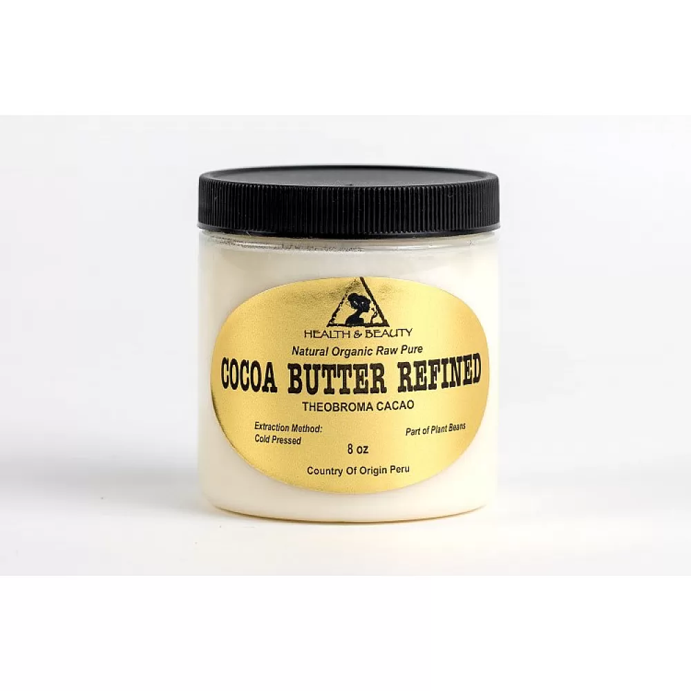 CACAO BEURRE RAFFINÉ BIOLOGIQUE RAW PURE FRESH FROID PRESSED Nom botanique: Theobroma Cacao. Méthode d'extraction: pressé à froid. Type de traitement: raffiné. Obtenu à partir de: Haricots végétaux. Biologique : Fabriqué sans pesticides, OGM ou hexane. Ingrédients: Beurre de cacao, 100% pur sans additifs ni supports ajoutés. Description: Ce beurre raffiné est obtenu à partir du fruit issu de la culture biologique du cacaoyer. À partir de ses grains, le beurre est extrait, puis transformé et raffiné pour obtenir un beurre blanc sans parfum. Le beurre de cacao est d'une importance commerciale significative dans les applications alimentaires, pharmaceutiques et cosmétiques. Solide et dur à température ambiante, il fondra au contact de la peau. Utilisations courantes: Avec son point de fusion relativement élevé, le beurre de cacao se liquéfie lentement à la température de la peau, ce qui le rend idéal pour une utilisation dans les rouges à lèvres et les baumes à lèvres. Il est également utilisé dans les savons en barre, les beurres pour le corps, les crèmes et les revitalisants. Il est absorbé plus rapidement dans la peau sans laisser de sensation grasse. Utilisation recommandée: • Lotions et crèmes: 2 - 20% Lors de l'ajout de beurres aux crèmes et lotions, il peut être nécessaire de les réchauffer doucement jusqu'à ce que la texture soit suffisamment douce pour être incorporée dans le produit final. À l'aide d'un mélangeur à main, créez un vortex avec votre crème ou votre lotion et arrosez votre beurre fondu pour bien l'intégrer. Pour l'ajout dans les savons, la règle générale est de 1 cuillère à soupe par livre. Comme pour la plupart des matières premières, les résultats peuvent varier, nous recommandons donc fortement les petits lots à l'échelle du laboratoire avant toute fabrication commerciale. Nous achetons notre produit auprès d'un fournisseur certifié biologique, fabriqué avec des ingrédients biologiques. Durée de conservation: Ce beurre doit être conservé dans un endroit frais et sombre et a une durée de conservation de 1 an lorsqu'il est correctement stocké. Remarque: L'aspect de ce beurre peut légèrement varier d'un lot à l'autre en raison des ingrédients naturels présents dans ce produit. La réfrigération est recommandée.