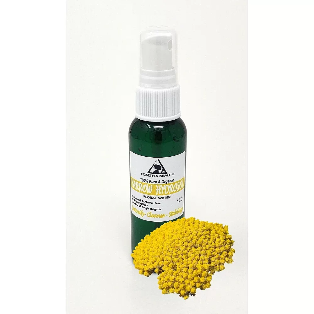 Avantages: Yarrow est utilisé comme médicament par de nombreuses cultures depuis des centaines d'années. L'hydrosol d'achillée millefeuille est un astringent plus doux que l'huile essentielle pure et aide à raffermir la peau et à réguler l'acné. L'utilisation de cet hydrolat sur les articulations douloureuses peut également aider à diminuer la douleur, ainsi qu'à améliorer la circulation dans tout le corps. Il est souvent utilisé en cosmétique pour peaux sèches. Grande aide digestive et détoxifiante en douceur. Bon à utiliser dans le cadre d'un nettoyage. Fournit un calme mental et un sentiment de paix. Efficace sur les conditions d'acné et les dommages causés par le soleil et le vent. Aide également à empêcher les blessures de saigner. Stabilise les fluides corporels. Également utile avec les animaux car ils ont tendance à aimer l'odeur - particulièrement bon pour la peau et les problèmes digestifs.