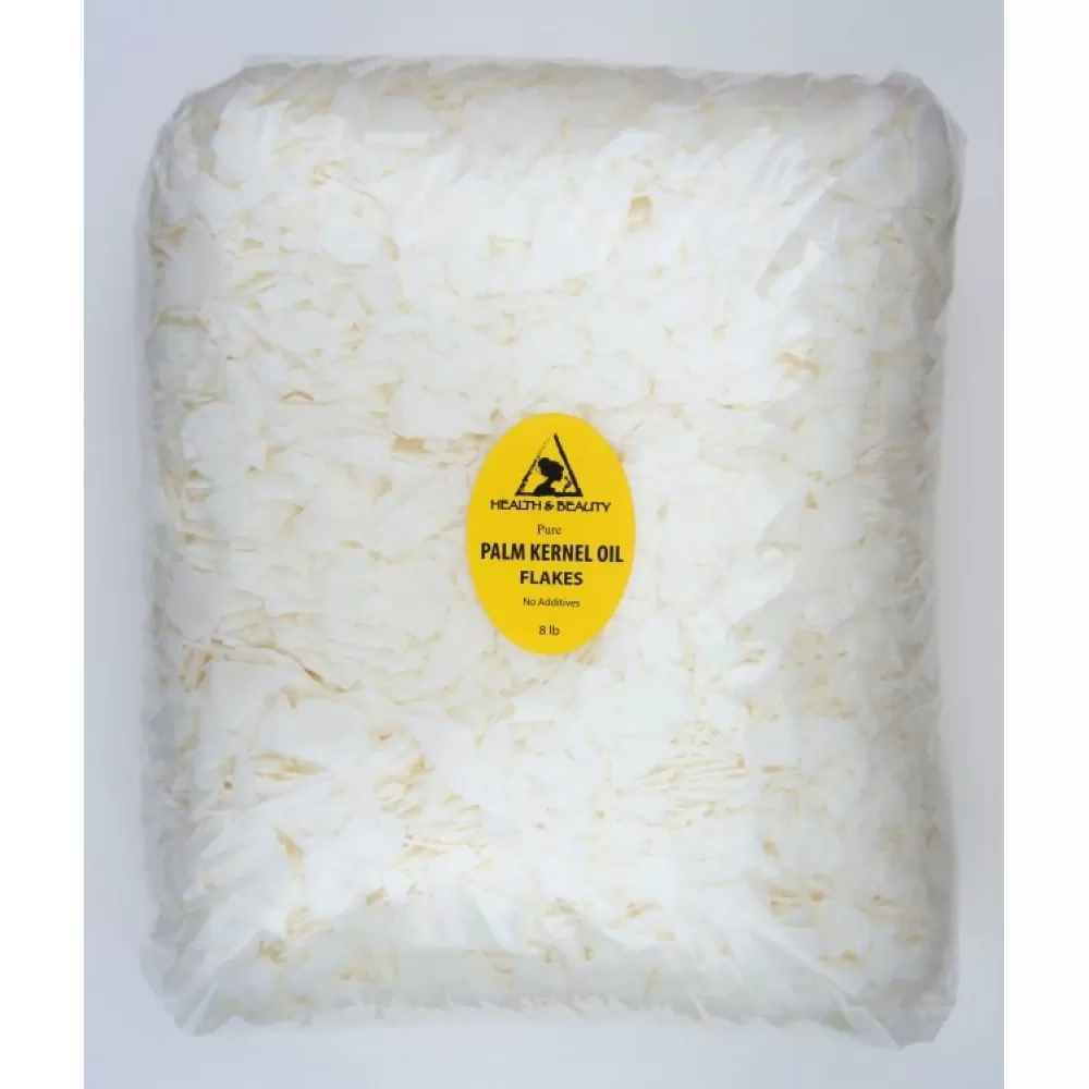 Naturel: Les flocons de palmiste sont obtenus à partir du noyau unique ou de la graine du fruit du palmier à huile. Cet arbre porte un fruit qui a une pulpe huileuse et de cette pulpe huileuse l'huile de palme est extraite. Il fait une barre de savon blanche très dure qui mousse dans presque n'importe quelle eau. Elle est très similaire à l'huile de coco. Les flocons de palmiste sont une huile de base que presque tous les savons utilisent dans un certain pourcentage. Les flocons de palmiste sont utilisés exactement de la même manière que l'huile de palmiste dans vos recettes, mais plus pratiques à manipuler. À ne pas confondre avec l'huile de palme. Palm Kernel n'est pas le même.
