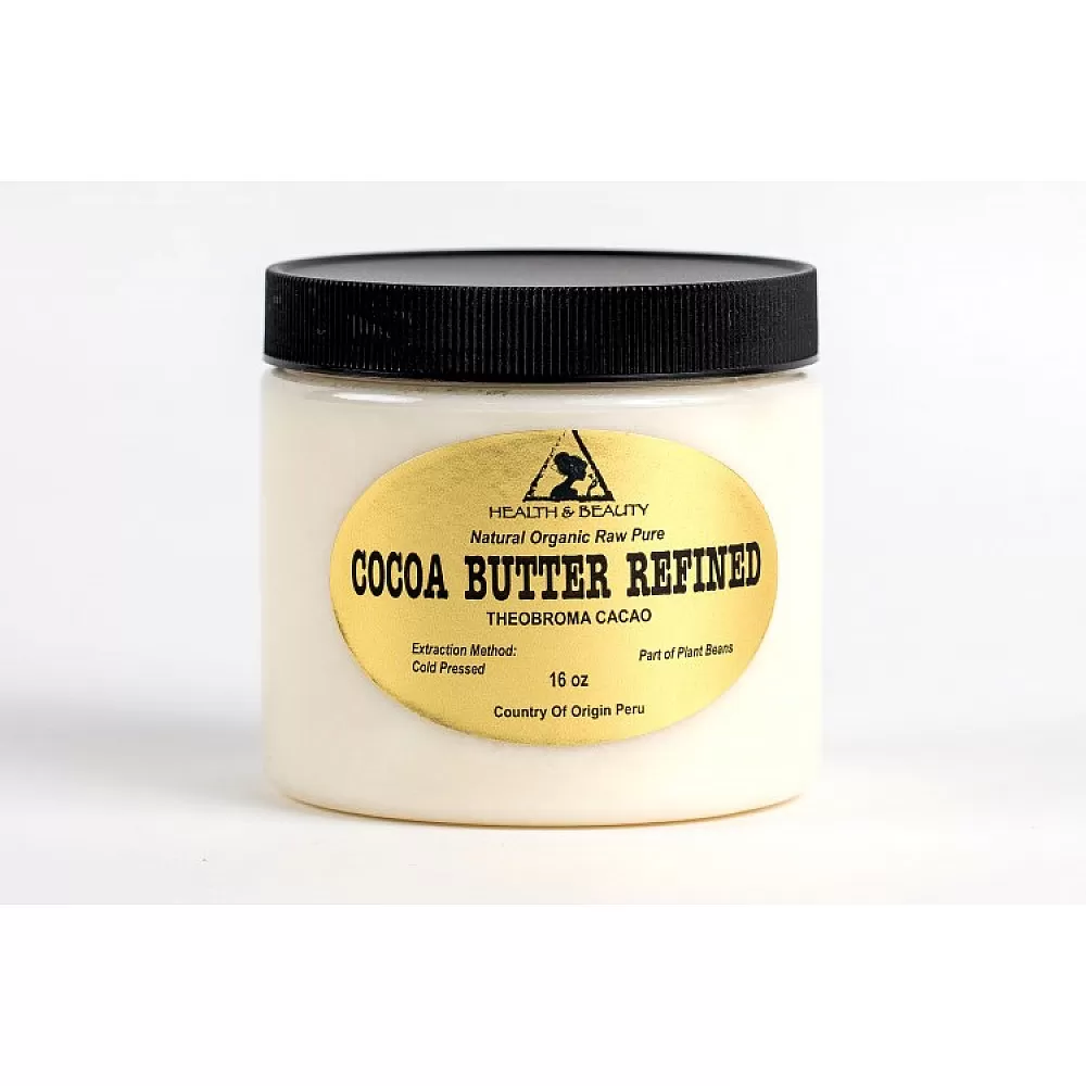 CACAO BEURRE RAFFINÉ BIOLOGIQUE RAW PURE FRESH FROID PRESSED Nom botanique: Theobroma Cacao. Méthode d'extraction: pressé à froid. Type de traitement: raffiné. Obtenu à partir de: Haricots végétaux. Biologique : Fabriqué sans pesticides, OGM ou hexane. Ingrédients: Beurre de cacao, 100% pur sans additifs ni supports ajoutés. Description: Ce beurre raffiné est obtenu à partir du fruit issu de la culture biologique du cacaoyer. À partir de ses grains, le beurre est extrait, puis transformé et raffiné pour obtenir un beurre blanc sans parfum. Le beurre de cacao est d'une importance commerciale significative dans les applications alimentaires, pharmaceutiques et cosmétiques. Solide et dur à température ambiante, il fondra au contact de la peau. Utilisations courantes: Avec son point de fusion relativement élevé, le beurre de cacao se liquéfie lentement à la température de la peau, ce qui le rend idéal pour une utilisation dans les rouges à lèvres et les baumes à lèvres. Il est également utilisé dans les savons en barre, les beurres pour le corps, les crèmes et les revitalisants. Il est absorbé plus rapidement dans la peau sans laisser de sensation grasse. Utilisation recommandée: • Lotions et crèmes: 2 - 20% Lors de l'ajout de beurres aux crèmes et lotions, il peut être nécessaire de les réchauffer doucement jusqu'à ce que la texture soit suffisamment douce pour être incorporée dans le produit final. À l'aide d'un mélangeur à main, créez un vortex avec votre crème ou votre lotion et arrosez votre beurre fondu pour bien l'intégrer. Pour l'ajout dans les savons, la règle générale est de 1 cuillère à soupe par livre. Comme pour la plupart des matières premières, les résultats peuvent varier, nous recommandons donc fortement les petits lots à l'échelle du laboratoire avant toute fabrication commerciale. Nous achetons notre produit auprès d'un fournisseur certifié biologique, fabriqué avec des ingrédients biologiques. Durée de conservation: Ce beurre doit être conservé dans un endroit frais et sombre et a une durée de conservation de 1 an lorsqu'il est correctement stocké. Remarque: L'aspect de ce beurre peut légèrement varier d'un lot à l'autre en raison des ingrédients naturels présents dans ce produit. La réfrigération est recommandée.