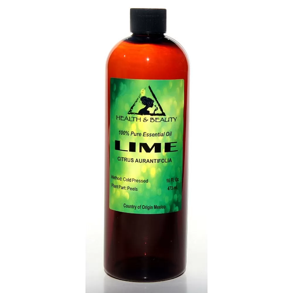 Lime 100% Pure Aromatherapy Essential OilBotanical Name: Citrus Aurantifolia Plant Part: Peel Extraction Method: Cold Pressed Origin: Mexico Package/Form: 0.6 oz - 2.2 oz: Amber Glass Bottle w/ Euro Dropper or Phenolic Cap. 4 oz - 16 oz: Amber Plastic Bottle. Blends well with: Bergamot, Cedarwood, Geranium, Grapefruit, Lavender, Lemon, Mandarin, Neroli, Nutmeg, Orange, Palmarosa, Petitgrain, Rose, Rosemary, Rosewood, Vetiver and Ylang-Ylang. Aromatic Scent: Lime Essential Oil has a crisp, sweet, fresh smell characteristic of citrus products. Strength of Aroma: Medium Bergamot, Cedarwood, Geranium, Grapefruit, Lavender, Lemon, Mandarin, Neroli, Nutmeg, Orange, Palmarosa, Petitgrain, Rose, Rosemary, Rosewood, Vetiver and Ylang-Ylang. Common Uses: Lime Essential Oil has a crisp, refreshing citrus scent that has been used by aromatherapists for its uplifting and revitalizing properties. It can also act as an astringent on skin where it is reputed to help clear oily skin. Properties: Antibacterial, antiseptic, antispasmodic, antiviral, aperitif, astringent, bactericidal, carminative, deodorant, febrifuge, restorative, tonic. Benefits: Boils, brittle nails, colds, corns, cuts, fever, infection, insect bites, mouth ulcers, nosebleeds, oily skin, poor circulation, stomach cramps, warts. Lime oil can be used in any blend you would add lemon oil to. The aroma is more tart but still very refreshing. History: Lime has been used historically to prevent sailors long at sea from developing scurvy. Shelf Life and Storage from the time of distillation: Approximately 1 – 2 years. It is impossible to say exactly what an essential oil shelf life will be. The storage conditions will vary and make a significant difference. If the essential oil has been received directly from the distiller shortly after distillation and the glass bottle is kept dark, full, closed, and cool, we can make some generalizations. Note that if an essential oil begins to appear cloudy, thicker, or if it smells more acidic, it has likely begun to oxidize. Cautions: Lime Essential Oil is considered phototoxic. Users should avoid direct sunlight after application. Avoid use during pregnancy.