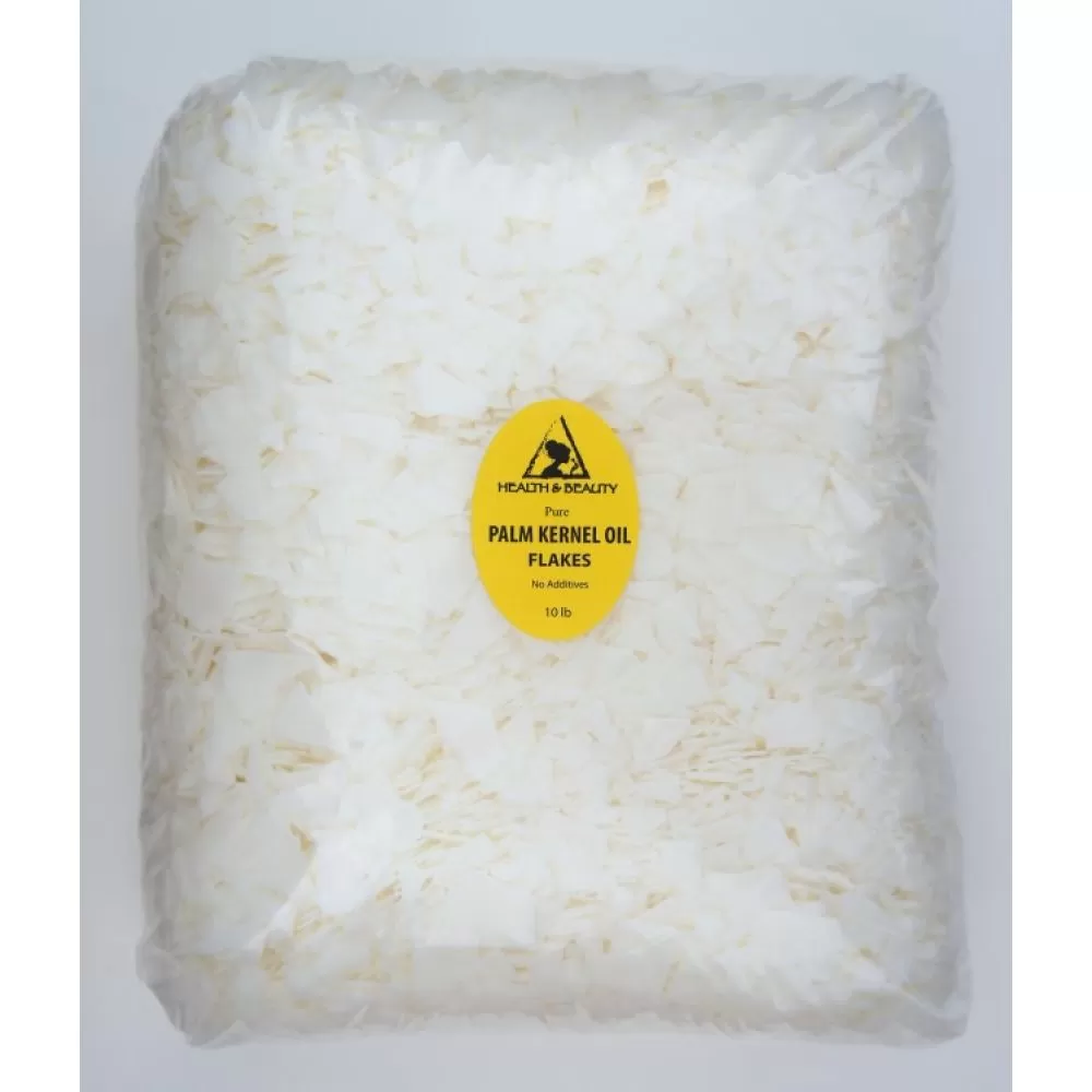 Natural: Palm Kernel Flakes are obtained from the single kernel or seed of the fruit of the Palm oil tree. This tree bears an fruit which has an oily pulp and from this oily pulp Palm Oil is extracted. It makes a very hard, white bar of soap that lathers in almost any water. It is very similar to coconut oil. Palm Kernel flakes are a base oil that almost all soapers use in some percentage. Palm kernel flakes are used exactly the same as palm kernel oil in your recipes, but more convenient to handle. Not to be confused with Palm Oil. Palm Kernel is not the same.