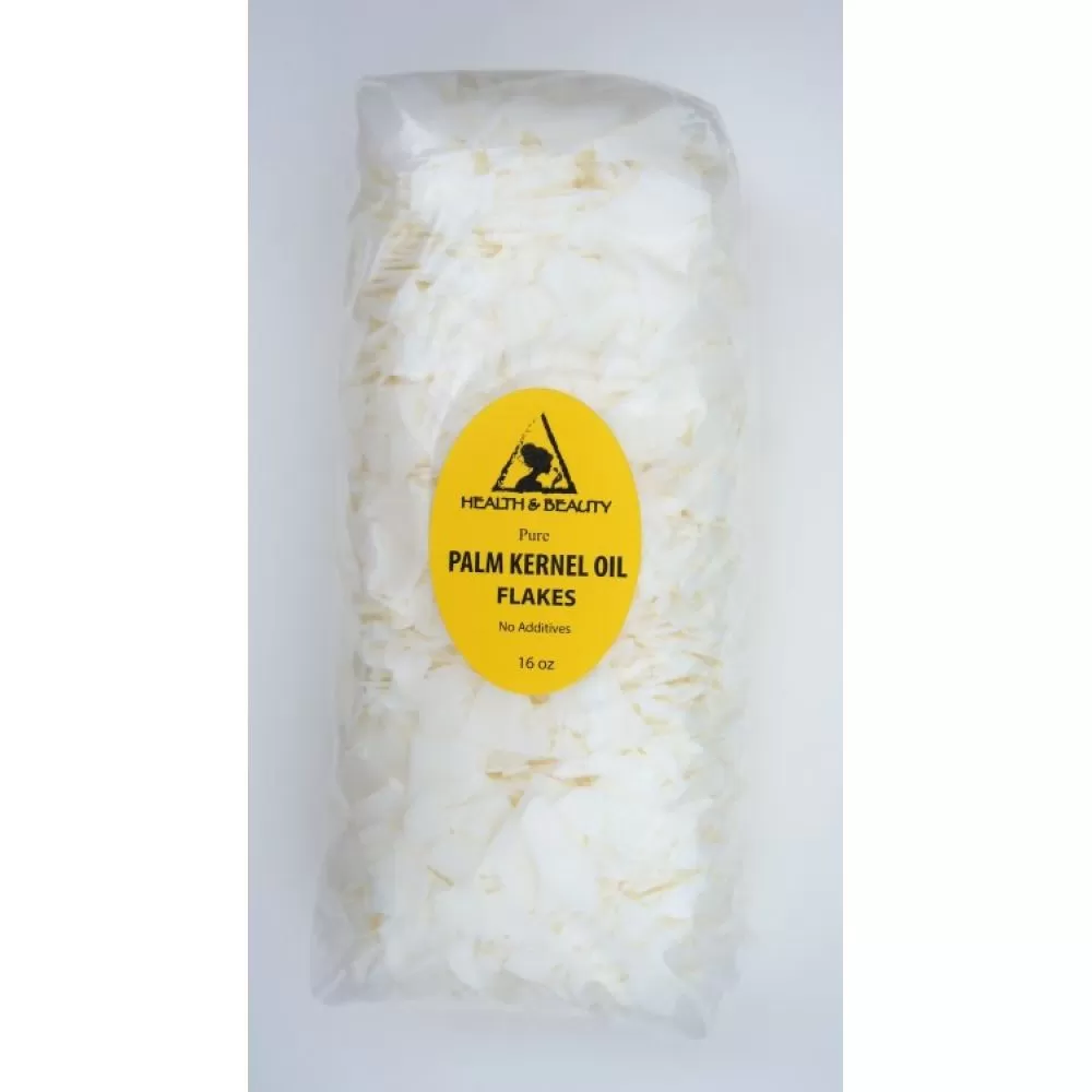 Natural: Palm Kernel Flakes are obtained from the single kernel or seed of the fruit of the Palm oil tree. This tree bears an fruit which has an oily pulp and from this oily pulp Palm Oil is extracted. It makes a very hard, white bar of soap that lathers in almost any water. It is very similar to coconut oil. Palm Kernel flakes are a base oil that almost all soapers use in some percentage. Palm kernel flakes are used exactly the same as palm kernel oil in your recipes, but more convenient to handle. Not to be confused with Palm Oil. Palm Kernel is not the same.