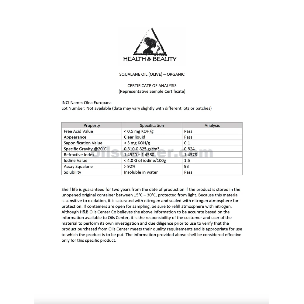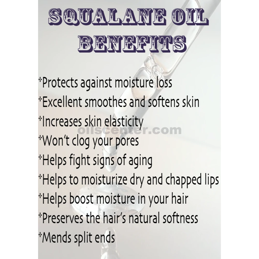 Description: Squalane Oil is a high purity vegetable Squalane obtained from organic Olives. Well known as Nature's Facelift, Olive Squalane, is a botanical lipid that mirrors human lipids in molecular structure and weight (scientists found that the skin's sebaceous glands synthesized approximately 10-12% Squalane). The Olive Squalane, is the plant-derived alternative to the animal-derived (shark liver oil) of the past. This valuable lipid is extremely compatible with the skin and is safe for all skin types, making it a great choice for regenerative skin care, and anti-aging products. If you've been looking for a way to make your body oils, and emulsions, feel more silky, and powdery, Olive Squalane, is one of the simplest, and most pure, solutions.