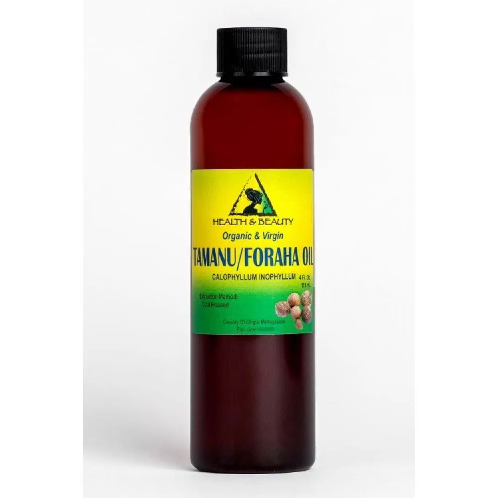 ORGANIC TAMANU / FORAHA OIL, UNREFINED, VIRGIN, COLD PRESSED, RAW, PURE (MADAGASCAR)Botanical Name: Calophyllum Inophyllum Extraction Method: Cold Pressed Processing Tape: Unrefined Organic: Made without pesticides, GMO's, or hexane. Ingredients: Tamanu / Foraha oil, 100% Pure with NO additives or carriers added. Package/Form: 0.6 oz - 1.1 oz: Amber Glass Bottle w/ Euro Dropper or Phenolic Cap. 2 oz - 64 oz: Clear Plastic Bottle. 7 LB (1 gal): Natural Plastic Jug. Color: Dark green viscous oily liquid. Aromatic Description: Tamanu Madagascar Carrier Oil has a rich, woody-spicy oil scent. Description: This variety of Tamanu Oil originates from Madagascar, although it can also be found in South East Asia. The fruit (seeds) are hand gathered from the coastal Tamanu trees, as they are said to yield the highest quality oil. Common Uses: Tamanu Carrier Oil is reputed to have wondrous wound-healing properties. It is known as being a cure-all for almost every skin ailment one can think of, from acne to eczema to psoriasis. Tamanu oil can be used in skin care products as it is composed of phospholipids and glycolipids, which are natural constituents of healthy skin and are good water-binding agents. It is a powerful healer for burns, cuts, eczema, rashes and insect bites. It can be applied neat to the skin or blended with other carrier oils. Consistency: Solid at room temperature. Product should be heated in a warm water bath in order to liquefy. Absorption: Absorbs into skin at average speed, slight oil feeling left on skin. We are buying our product from organic certified supplier, made with organic ingredients. Shelf Life: Users can expect a shelf life of 1 year with proper storage conditions (cool, out of direct sunlight). Refrigeration after opening is recommended. Cautions: Persons with nut allergy should not use this oil. |